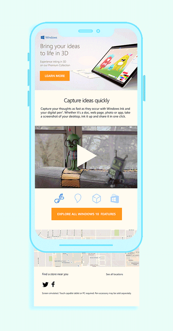 In order to teach customers about Windows' new program Paint 3D, my team was tasked with creating a campaign to reach a student based audience in third party retail. Teaching myself how to use the new 3D program, I created the hero creature, fondly named Bernie, which was then picked up by the Windows Brand Group to use in their marketing content. We also collaborated with the Retail Demo Experience team to integrate the creature story visuals into demos in order to enhance the customer interaction and increase brand cohesion.